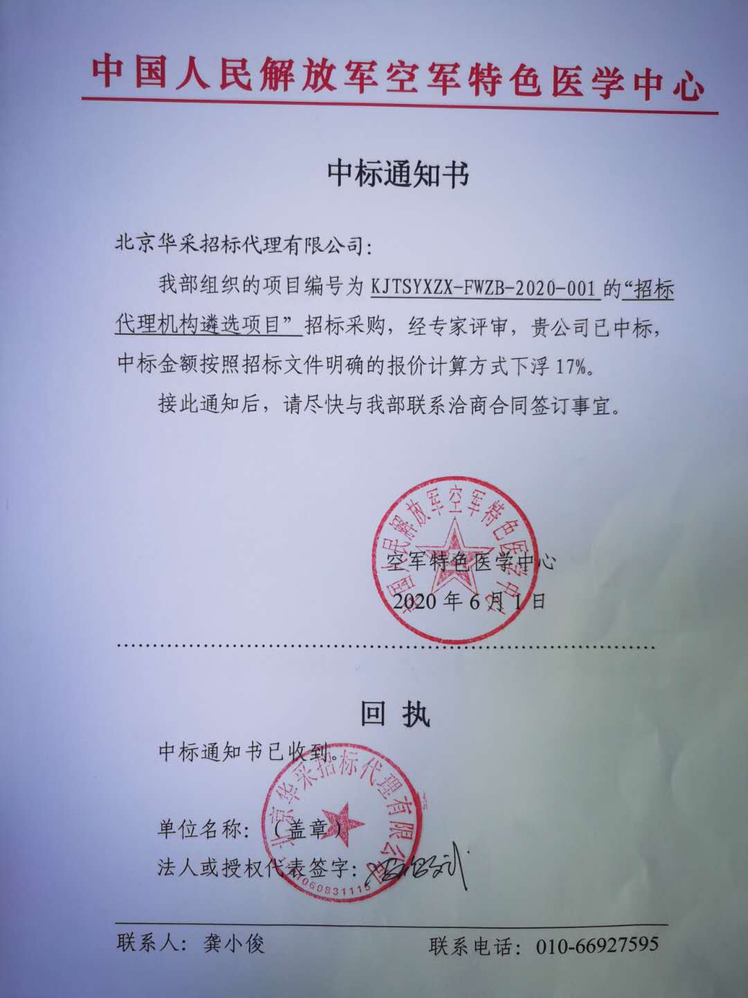 北京華采招標(biāo)代理有限公司成功入圍中國人民解放軍空軍特色醫(yī)學(xué)中心招標(biāo)代理機構(gòu)