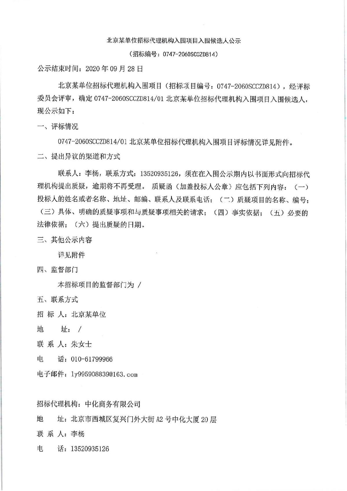 北京華采招標(biāo)代理有限公司成功入圍北京某單單位候選人